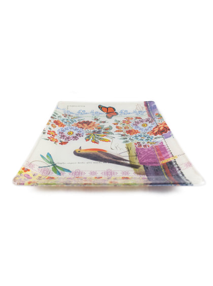 Bandeja de Vidro Passarinho com Flores Média - Fringe Studio