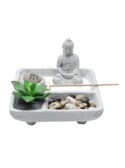 Decor Concreto com Cachepot Buddah Squared Zen Garden Cinza - Urban